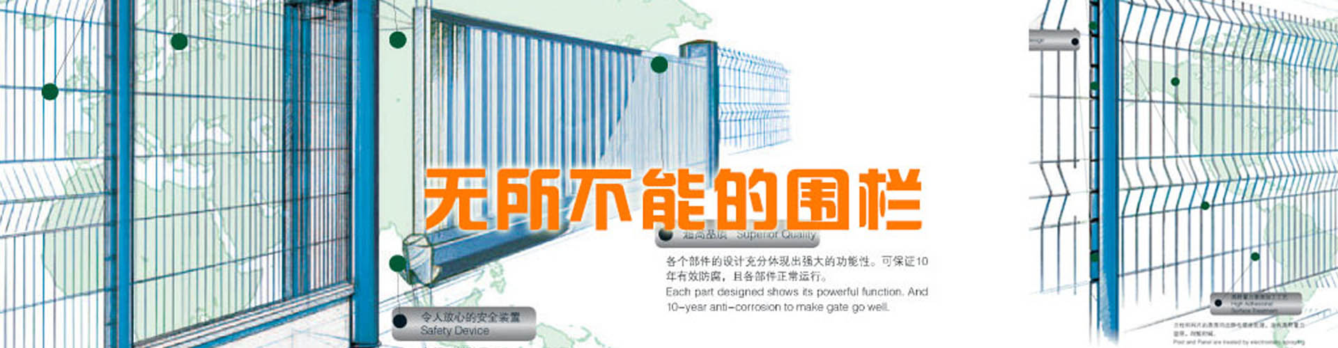 河北思固爾圍欄設(shè)施有限公司致力于專業(yè)的場(chǎng)地防護(hù)產(chǎn)品的研發(fā)與生產(chǎn),為全球客戶提供優(yōu)質(zhì)先進(jìn)的金屬圍欄、全鋼結(jié)構(gòu)大門和其他防護(hù)產(chǎn)品及服務(wù)。思固爾圍欄以一種目前市場(chǎng)上成熟的設(shè)計(jì)理念將立柱與焊網(wǎng)結(jié)合在一起,可以應(yīng)廣大客戶的要求提供理想的解決方案。公司于2002年通過ISO9001質(zhì)量管理體系認(rèn)證;2004年被評(píng)為項(xiàng)目建設(shè)先進(jìn)單位,信用優(yōu)良企業(yè),科技進(jìn)步先進(jìn)單位;2006年底公司取得了自營出口權(quán);2006年5月10日思固爾圍欄獲得中華人民共和國國家知識(shí)產(chǎn)權(quán)局頒發(fā)的實(shí)用新型專利證書目前,公司產(chǎn)品銷售網(wǎng)絡(luò)已遍及新疆、黑龍江、遼寧、江蘇、內(nèi)蒙古、海南、廣西、廣東、湖南、湖北、上海、福建、浙江、河南、北京等全國各地,并出口至加拿大、烏克蘭、伊朗、新西蘭、泰國、俄羅斯、南非、印度、巴基斯坦、韓國等30多個(gè)國家和地區(qū)。今天的思固爾已發(fā)展成集研發(fā)、設(shè)計(jì)、制造、貿(mào)易為一體的綜合性實(shí)體公司。思固爾人一如既往地秉承之前的創(chuàng)業(yè)精神,引進(jìn)與運(yùn)用現(xiàn)代的管理模式,迎合未來的市場(chǎng)需求,竭力滿足不同客戶的需求,力爭(zhēng)早日把思固爾打造成中國的民族品牌!-----------------------------------------...